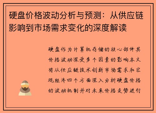 硬盘价格波动分析与预测:从供应链影响到市场需求变化的深度解读